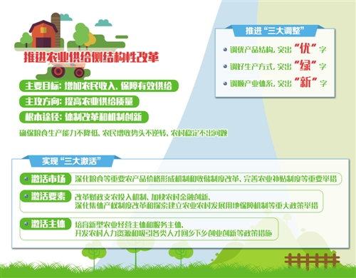 中國經濟網北京2月5日訊 《中共中央國務院關于深入推進農業供給側結構性改革加快培育農業農村發展新動能的若干意見》今天發布,這是新世紀以來指導“三農”工作的第十四份中央一號文件。 文件全文約12000字,共分6個部分33條,包括:優化產品產業結構,著力推進農業提質增效;推行綠色生產方式,增強農業可持續發展能力;壯大新產業新業態,拓展農業產業鏈價值鏈;強化科技創新驅動,引領現代農業加快發展;補齊農業農村短板,夯實農村共享發展基礎;加大農村改革力度,激活農業農村內生發展動力。 文件指出,推進農業供給側結構性改革,要在確保國家糧食安全的基礎上,緊緊圍繞市場需求變化,以增加農民收入、保障有效供給為主要目標,以提高農業供給質量為主攻方向,以體制改革和機制創新為根本途徑,優化農業產業體系、生產體系、經營體系,提高土地產出率、資源利用率、勞動生產率,促進農業農村發展由過度依賴資源消耗、主要滿足量的需求,向追求綠色生態可持續、更加注重滿足質的需求轉變。 文件強調,推進農業供給側結構性改革是一個長期過程,處理好政府和市場關系、協調好各方面利益,面臨許多重大考驗。必須直面困難和挑戰,堅定不移推進改革,勇于承受改革陣痛,盡力降低改革成本,積極防范改革風險,確保糧食生產能力不降低、農民增收勢頭不逆轉、農村穩定不出問題。 中共中央國務院關于深入推進農業供給側結構性改革加快培育農業農村發展新動能的若干意見 經過多年不懈努力,我國農業農村發展不斷邁上新臺階,已進入新的歷史階段。農業的主要矛盾由總量不足轉變為結構性矛盾,突出表現為階段性供過于求和供給不足并存,矛盾的主要方面在供給側。近幾年,我國在農業轉方式、調結構、促改革等方面進行積極探索,為進一步推進農業轉型升級打下一定基礎,但農產品供求結構失衡、要素配置不合理、資源環境壓力大、農民收入持續增長乏力等問題仍很突出,增加產量與提升品質、成本攀升與價格低迷、庫存高企與銷售不暢、小生產與大市場、國內外價格倒掛等矛盾亟待破解。必須順應新形勢新要求,堅持問題導向,調整工作重心,深入推進農業供給側結構性改革,加快培育農業農村發展新動能,開創農業現代化建設新局面。 推進農業供給側結構性改革,要在確保國家糧食安全的基礎上,緊緊圍繞市場需求變化,以增加農民收入、保障有效供給為主要目標,以提高農業供給質量為主攻方向,以體制改革和機制創新為根本途徑,優化農業產業體系、生產體系、經營體系,提高土地產出率、資源利用率、勞動生產率,促進農業農村發展由過度依賴資源消耗、主要滿足量的需求,向追求綠色生態可持續、更加注重滿足質的需求轉變。 推進農業供給側結構性改革是一個長期過程,處理好政府和市場關系、協調好各方面利益,面臨許多重大考驗。必須直面困難和挑戰,堅定不移推進改革,勇于承受改革陣痛,盡力降低改革成本,積極防范改革風險,確保糧食生產能力不降低、農民增收勢頭不逆轉、農村穩定不出問題。 2017年農業農村工作,要全面貫徹黨的十八大和十八屆三中、四中、五中、六中全會精神,以鄧小平理論、“三個代表”重要思想、科學發展觀為指導,深入貫徹習近平總書記系列重要講話精神和治國理政新理念新思想新戰略,堅持新發展理念,協調推進農業現代化與新型城鎮化,以推進農業供給側結構性改革為主線,圍繞農業增效、農民增收、農村增綠,加強科技創新引領,加快結構調整步伐,加大農村改革力度,提高農業綜合效益和競爭力,推動社會主義新農村建設取得新的進展,力爭農村全面小康建設邁出更大步伐。 一、優化產品產業結構,著力推進農業提質增效 1.統籌調整糧經飼種植結構。按照穩糧、優經、擴飼的要求,加快構建糧經飼協調發展的三元種植結構。糧食作物要穩定水稻、小麥生產,確保口糧絕對安全,重點發展優質稻米和強筋弱筋小麥,繼續調減非優勢區籽粒玉米,增加優質食用大豆、薯類、雜糧雜豆等。經濟作物要優化品種品質和區域布局,鞏固主產區棉花、油料、糖料生產,促進園藝作物增值增效。飼料作物要擴大種植面積,發展青貯玉米、苜蓿等優質牧草,大力培育現代飼草料產業體系。加快北方農牧交錯帶結構調整,形成以養帶種、牧林農復合、草果菜結合的種植結構。繼續開展糧改飼、糧改豆補貼試點。 2.發展規模高效養殖業。穩定生豬生產,優化南方水網地區生豬養殖區域布局,引導產能向環境容量大的地區和玉米主產區轉移。加快品種改良,大力發展牛羊等草食畜牧業。全面振興奶業,重點支持適度規模的家庭牧場,引導擴大生鮮乳消費,嚴格執行復原乳標識制度,培育國產優質品牌。合理確定湖泊水庫等內陸水域養殖規模,推動水產養殖減量增效。推進稻田綜合種養和低洼鹽堿地養殖。完善江河湖海限捕、禁捕時限和區域,率先在長江流域水生生物保護區實現全面禁捕。科學有序開發灘涂資源。支持集約化海水健康養殖,發展現代化海洋牧場,加強區域協同保護,合理控制近海捕撈。積極發展遠洋漁業。建立海洋漁業資源總量管理制度,規范各類漁業用海活動,支持漁民減船轉產。 3.做大做強優勢特色產業。實施優勢特色農業提質增效行動計劃,促進雜糧雜豆、蔬菜瓜果、茶葉蠶桑、花卉苗木、食用