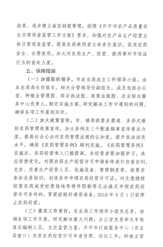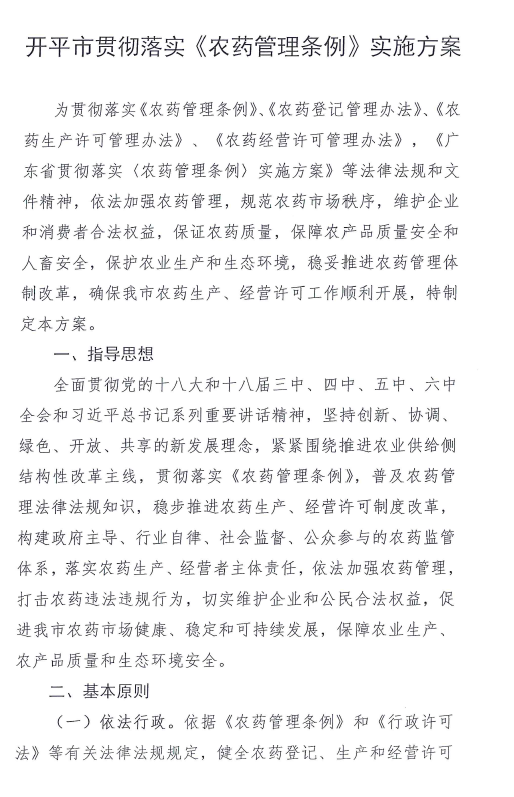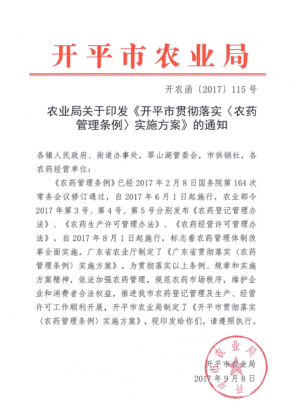 農業局關于印發《開平市貫徹落實〈農藥管理條例〉實施方案》的通知