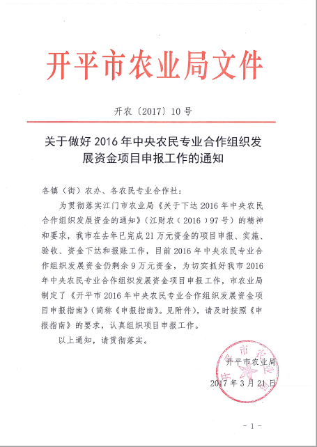 附件下載:附件:開平市2016年中央農民專業合作組織發展資金項目申報指南