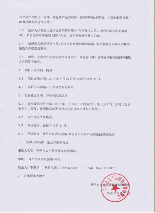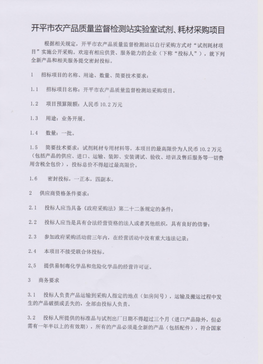 開平市農(nóng)產(chǎn)品質(zhì)量監(jiān)督檢測站實驗室試劑、耗材采購項目