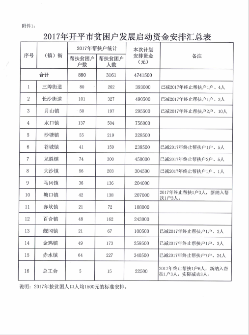 關(guān)于下達(dá)2017年開平市貧困戶發(fā)展啟動資金扶持計劃的通知