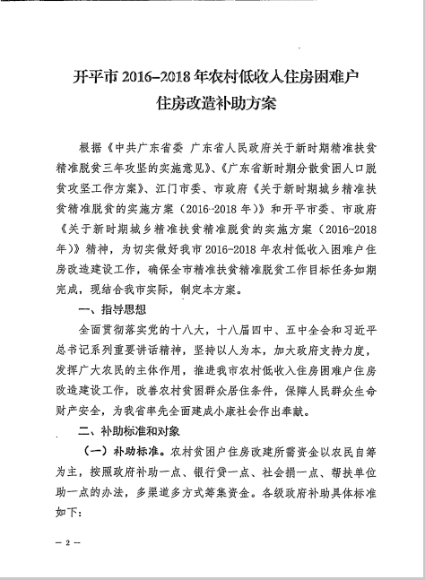 開(kāi)府辦〔2017〕53號(hào)關(guān)于印發(fā)開(kāi)平市2016-2018年農(nóng)村低收入住房困難戶住房改造補(bǔ)助方案的通知