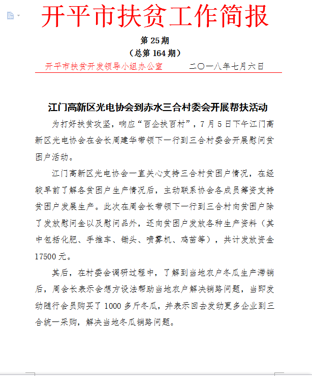 開平扶貧簡報2018年第25期(總第164期)