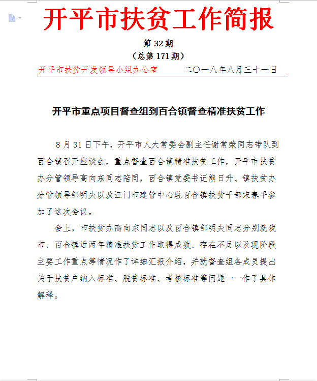 開平扶貧工作簡報2018年第32期(總第171期)
