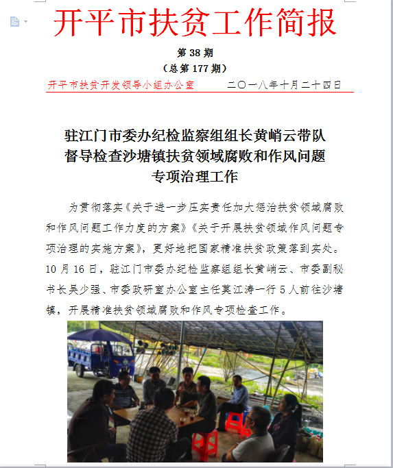 開平市扶貧簡報2018年第38期(總第177期)