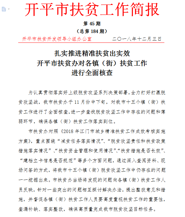 開平市扶貧簡報(bào)2018年第45期(總第184期)(1)