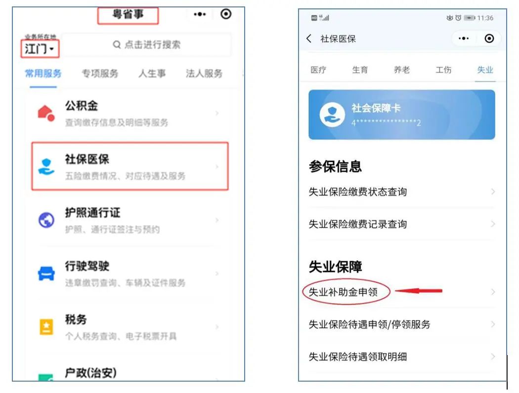 申領(lǐng)截止時間:2020年12月31日 12月31日、12月31日、12月31日截止 申領(lǐng)條件 ①2020年3月至12月,領(lǐng)取失業(yè)保險金期滿仍未就業(yè)的失業(yè)人員; ②2020年3月至12月,不符合領(lǐng)取失業(yè)保險金條件的參保人失業(yè)人員(指參保繳費(fèi)不足1年或繳費(fèi)滿1年但本人辭職等本人原因失業(yè))。 申領(lǐng)渠道、步驟 不用跑腿!!!失業(yè)補(bǔ)助金申領(lǐng)無需現(xiàn)場辦理,通過廣東省網(wǎng)辦平臺(http://hrss.gd.gov.cn/gdsbfw/)、“粵省事”微信小程序等全程線上辦理, 方便快捷。 ①省網(wǎng)辦平臺:廣東省人力資源和社會保障廳網(wǎng)中的“廣東社保服務(wù)”專欄(http://hrss.gd.gov.cn/gdsbfw/) →社會保險網(wǎng)上個人服務(wù)(注冊或登錄) 失業(yè)待遇→ 失業(yè)補(bǔ)助金申領(lǐng) →失業(yè)補(bǔ)助金申領(lǐng) 進(jìn)入失業(yè)補(bǔ)助金申領(lǐng)頁面,選擇【受理】按鈕,校驗通過后可填寫相關(guān)信息并點擊【提交】按鈕進(jìn)行網(wǎng)上申報。 ②“粵省事”小程序:微信搜索 “粵省事”微信小程序→社保醫(yī)保→失業(yè)→失業(yè)保障→失業(yè)補(bǔ)助金申領(lǐng),圖例如下: