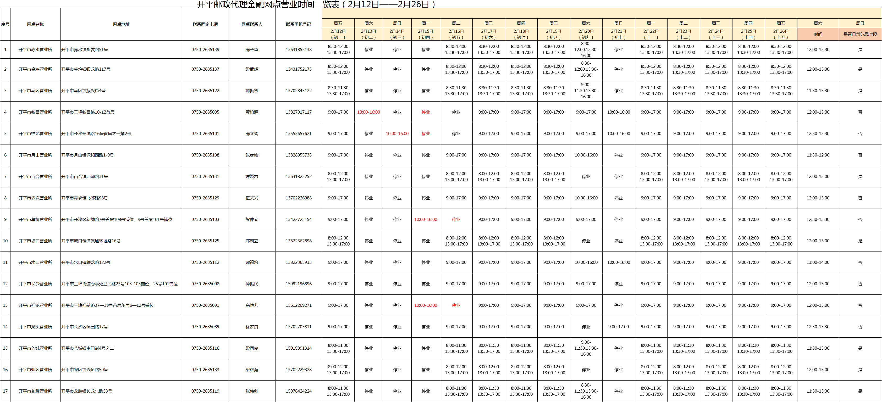 開平郵政邀您留開平過年,助您“郵愛回家”。即日起至元宵節(2月26日),凡持外省身份證到訪郵政網點參與春節活動,即可獲得春節大禮包,并免費包郵到家,幫您送達對家人的祝福和新年的問候,活動詳情請咨詢郵政各大網點。