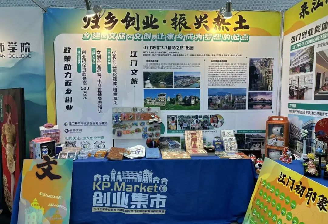 開平市持續推動返鄉入鄉創業工作,充分發揮平臺優勢,為青年返鄉入鄉提供“一站式”的創業就業服務,吸引著一批又一批青年創業者利用開平豐富的農文旅資源,返鄉入鄉描繪創業夢想的藍圖。招聘會當天的僑鄉特色文創展位上展示了多家入駐江門開平市文旅創業孵化基地(下稱基地)的企業以及坐落于開平的廣東首家先鋒書店的最新文創產品,近百款的文創產品囊括了冰箱貼、鑰匙扣、明信片等常見的小物件,也有鉤織糧倉、“鵝們”公仔、碉樓微景觀模型等定制類、IP類特有款式,每一款都能讓求職者領略到僑鄉文化與開平特色。