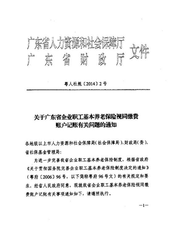 轉發省廳《關于廣東省企業職工基本養老保險視同繳費賬戶記賬有關問題的通知》的通知