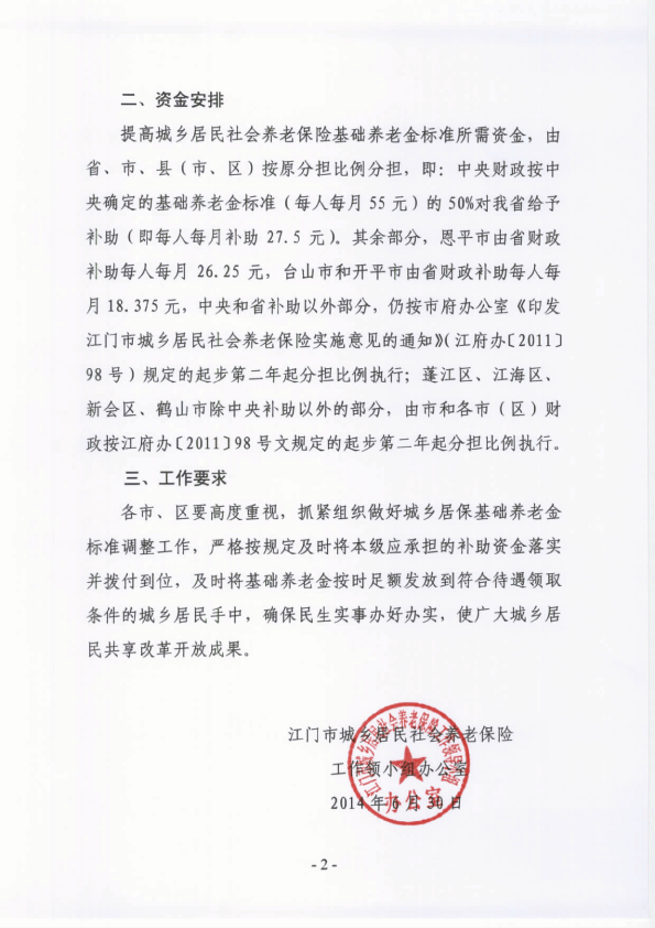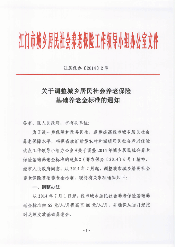 關于調整城鄉居民社會養老保險基礎養老金標準的通知