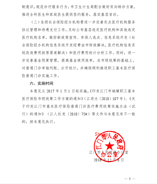 江門市人民政府辦公室關于進一步完善江門市職工基本醫療保險普通門診統籌的意見