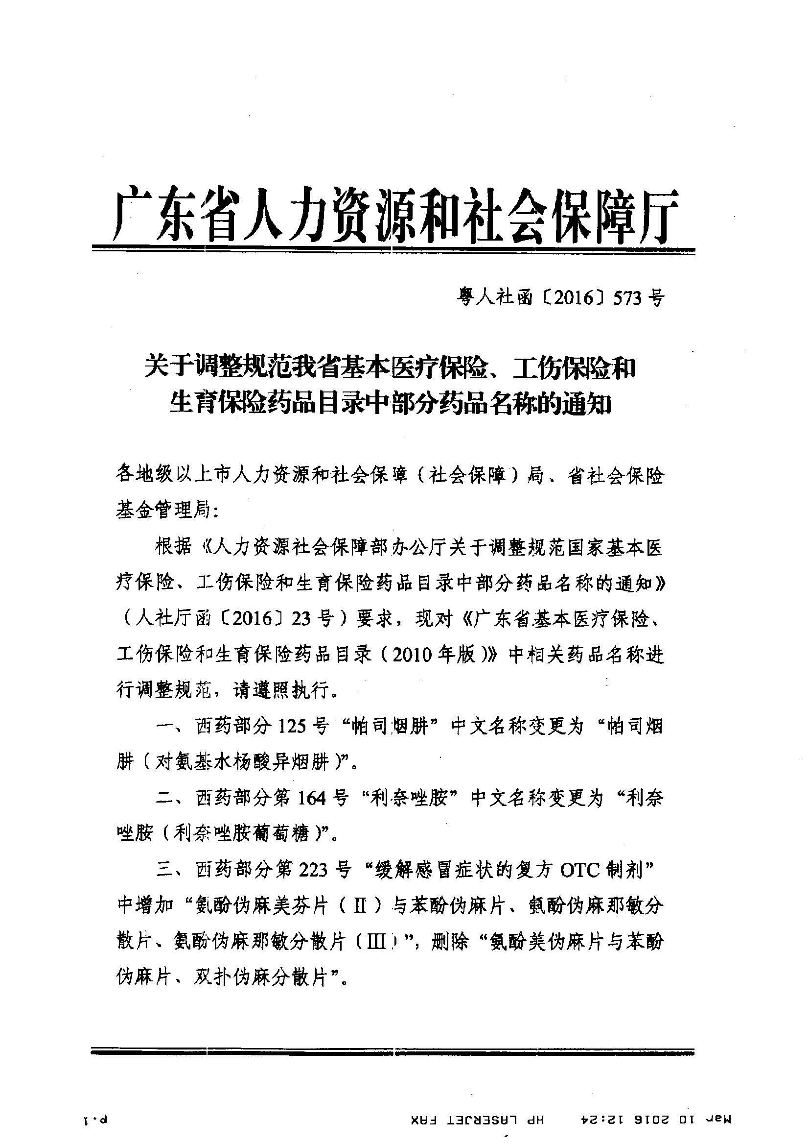 現(xiàn)將省人力資源社會(huì)保障廳《關(guān)于調(diào)整規(guī)范我省基本醫(yī)療保險(xiǎn)、工傷保險(xiǎn)和生育保險(xiǎn)藥品目錄中部分藥品名稱的通知》(粵人社函〔2016〕573號(hào))轉(zhuǎn)發(fā)給你們,請(qǐng)遵照?qǐng)?zhí)行。