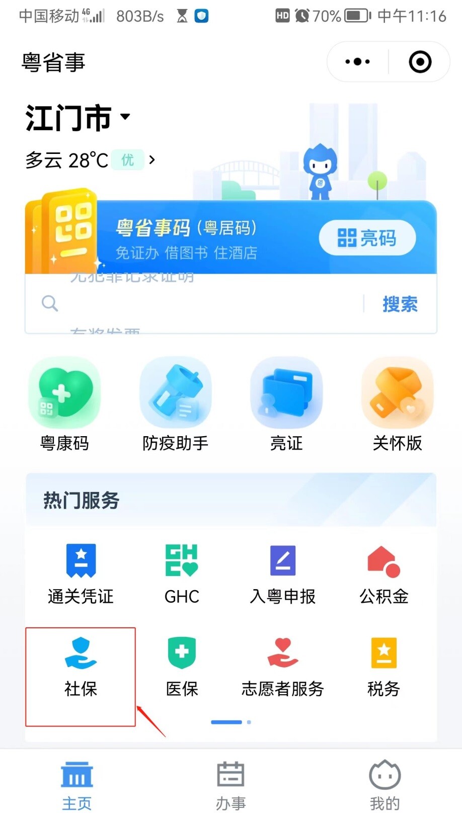 點擊“社保”選項