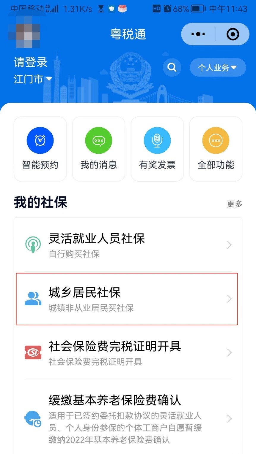 選擇“城鄉居民社保”