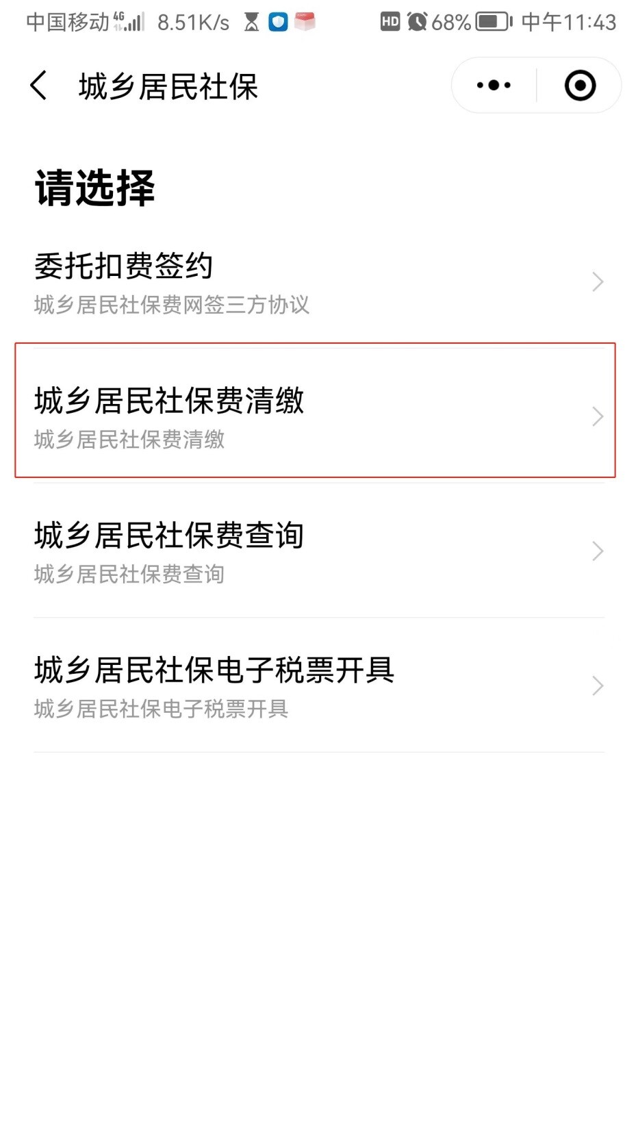 選擇“城鄉居民社保費清繳”