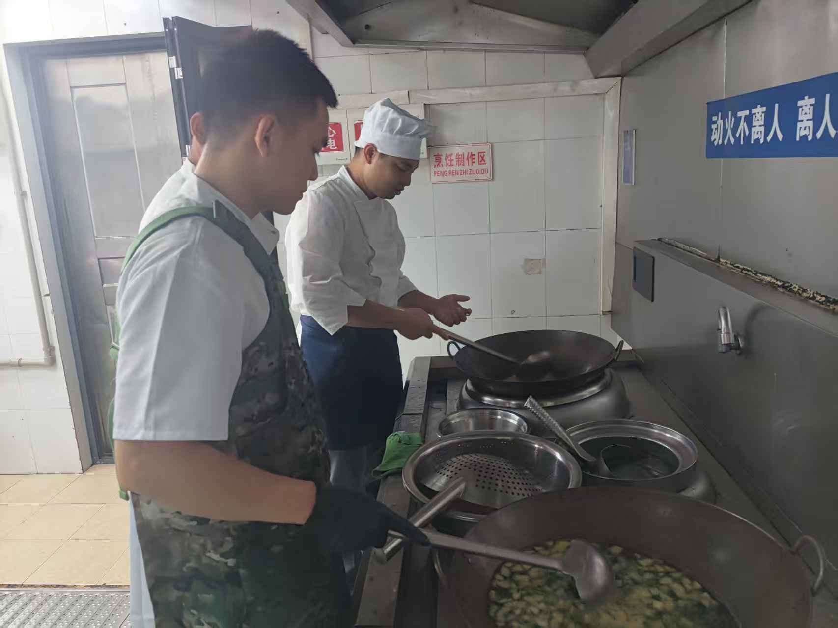 本次培訓活動聚焦“特色菜”“家常菜”兩大教學菜單,特邀省星級廚師甄樹源、高級中式烹調師譚仲康兩位資深的粵菜師傅,以分段現場授課的方式進行。兩位老師精選開平特色食材,兼顧官兵膳食營養需求,精心挑選了僑鄉燜馬岡鵝、油鹽蒸無骨大沙水庫魚、金山火蒜炒大沙麥、潭碧冬瓜盅等10道特色菜肴進行授藝。老師們從刀工火候到風味調配傾囊相授,官兵們積極實踐,軍營食堂飄散著濃郁的“僑鄉味道”。