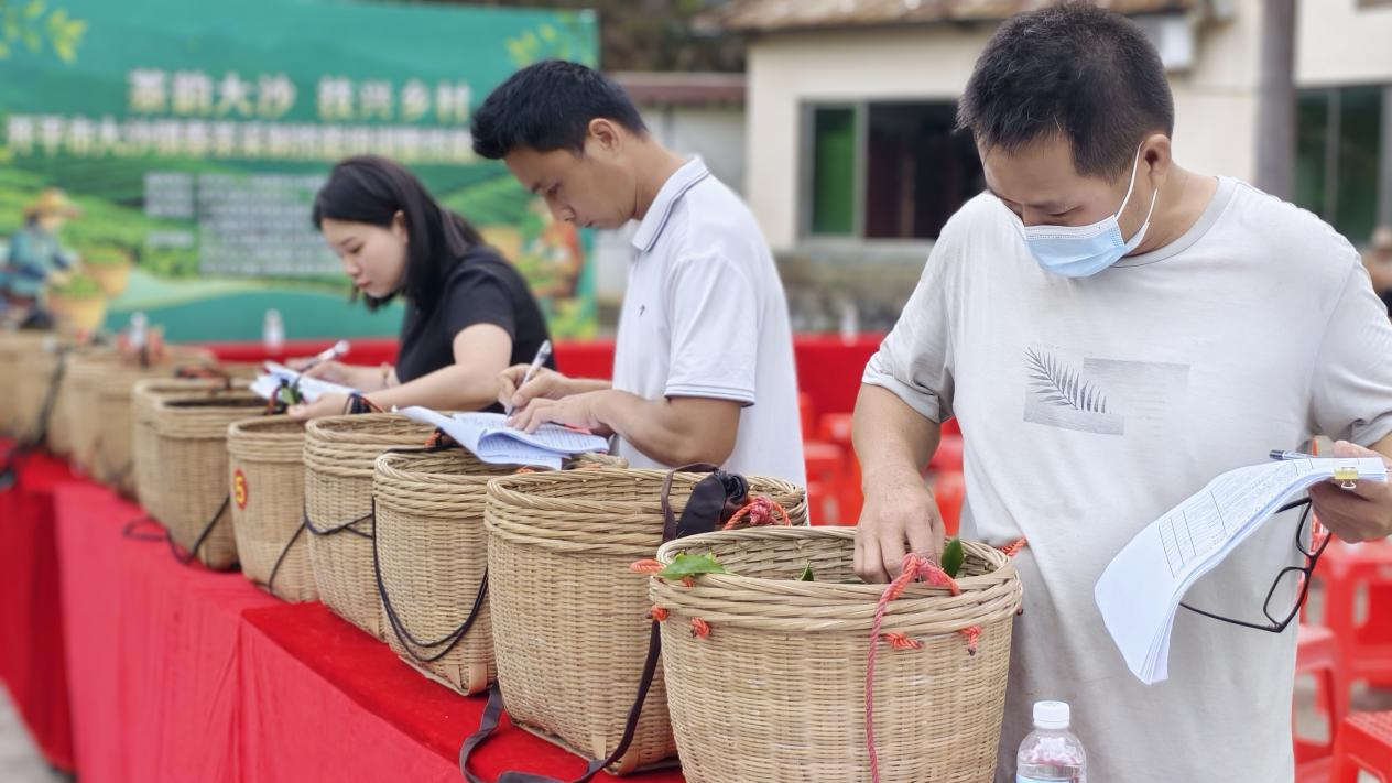 目前大沙茶以綠茶、紅茶、黃茶為主,制作工藝傳承古法并結(jié)合現(xiàn)代技術(shù)。如今大沙鎮(zhèn)全域茶葉種植面積達3.5萬畝,是全國“一村一品”示范村鎮(zhèn),也是粵港澳大灣區(qū)著名的有機茶產(chǎn)業(yè)基地,是開平市茶葉種植面積最大、品牌數(shù)量最多、產(chǎn)業(yè)發(fā)展最為突出的鄉(xiāng)鎮(zhèn)。眼下正值春茶采摘加工的黃金時期,為進一步做強茶產(chǎn)業(yè)、做優(yōu)茶技能、做實茶就業(yè),活動采用“專家智庫+田間課堂+賽場選才+推薦就業(yè)”的全鏈條模式,將“人才鏈” 嵌入“產(chǎn)業(yè)鏈”,探索以技能驅(qū)動茶產(chǎn)業(yè)高質(zhì)量發(fā)展、助力縣域經(jīng)濟壯大的新路徑。