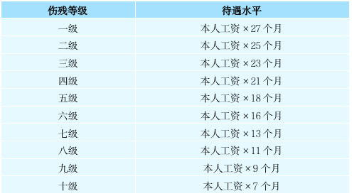 在規范參加工傷保險的情況下,職工發生工傷,并且經勞動能力鑒定機構鑒定,傷殘等級達到一級至十級時,可以向工傷保險基金申請按規定領取一次性傷殘補助金,具體待遇標準如下: