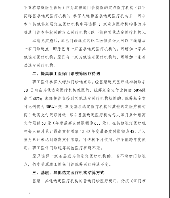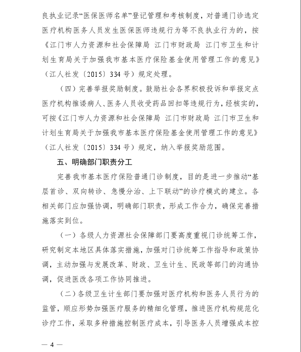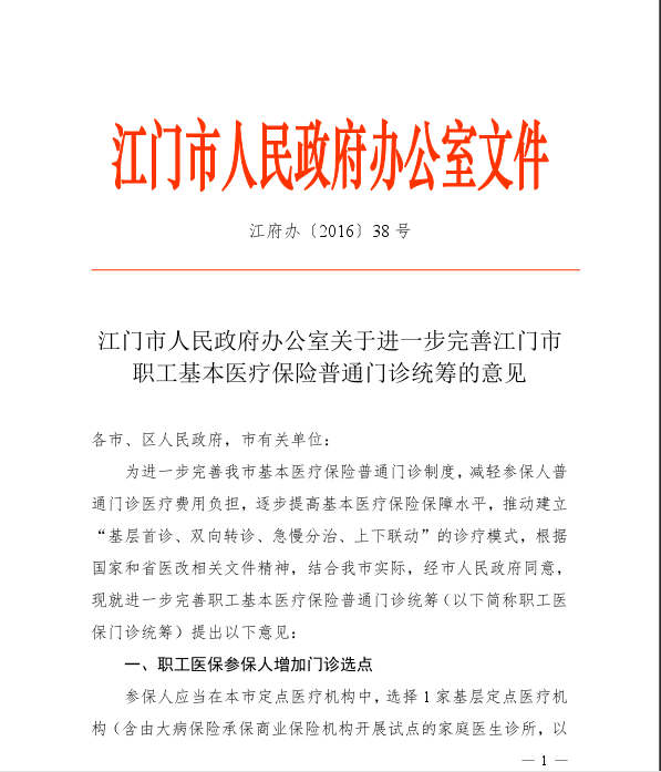 江門市人民政府辦公室關(guān)于進一步完善江門市職工基本醫(yī)療保險普通門診統(tǒng)籌的意見