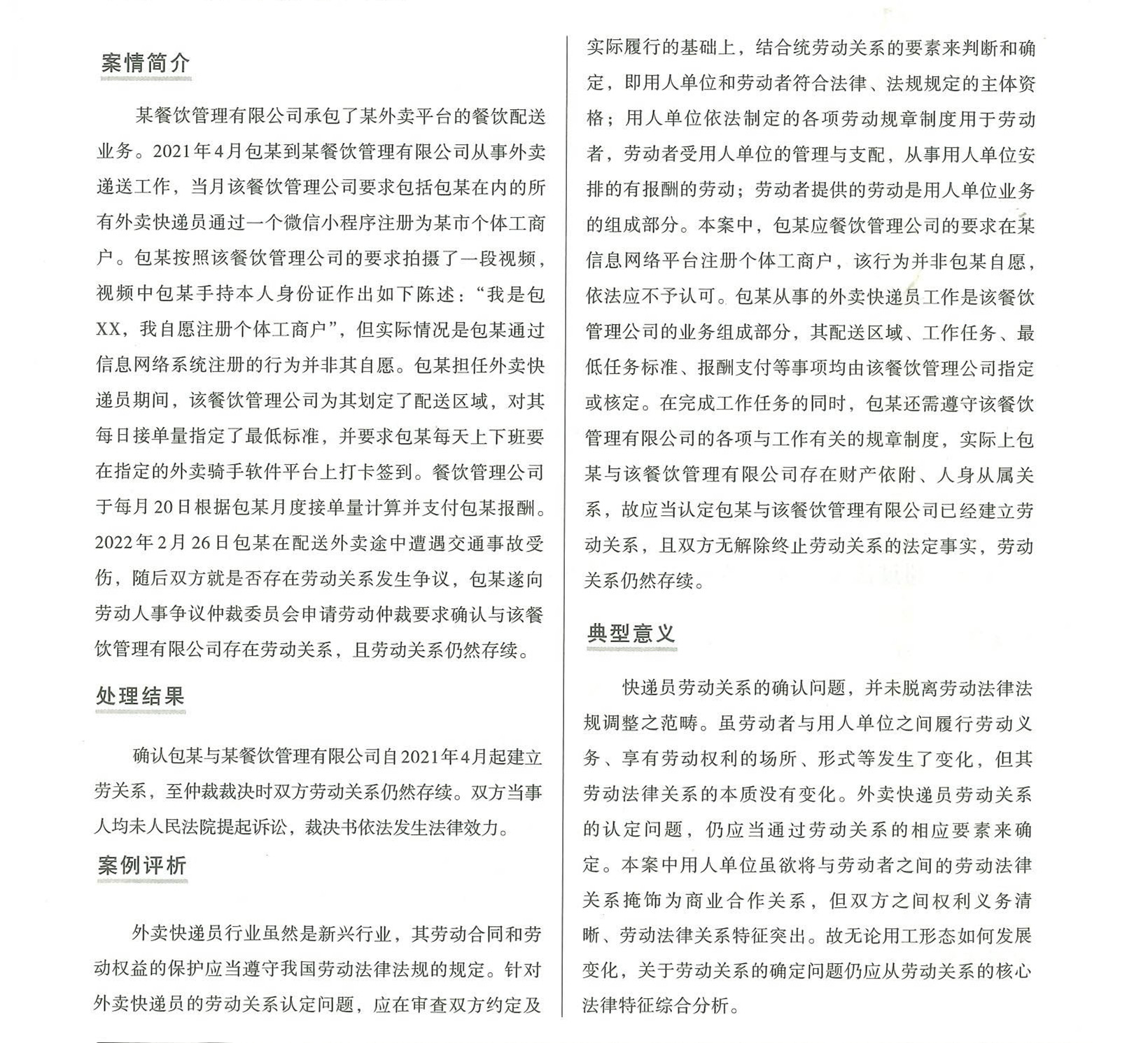 近年來,平臺經(jīng)濟迅速發(fā)展,創(chuàng)造了大量就業(yè)機會。與此同時,新就業(yè)形態(tài)勞動者在維護自身合法權(quán)益是往往因為勞動關(guān)系問題受阻。本期通過以案釋法一起來了解新就業(yè)形態(tài)的勞動關(guān)系確認問題。