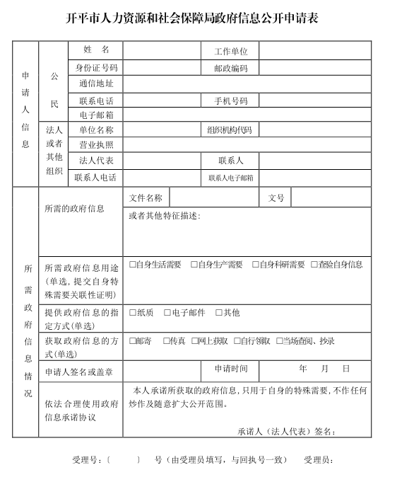 開平市人力資源和社會保障局政府信息公開申請表