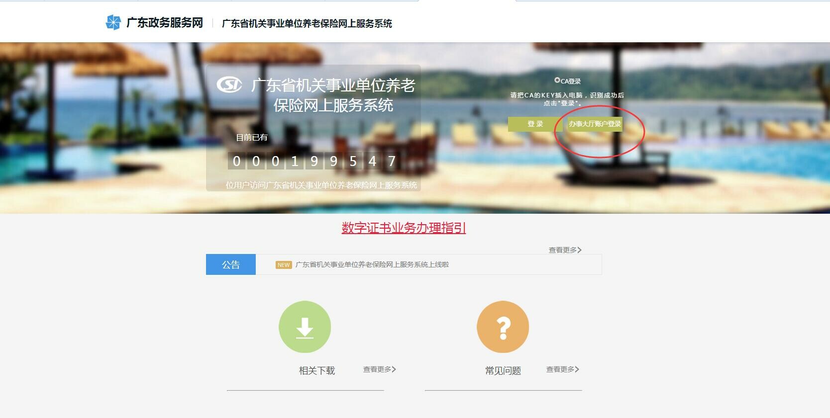 一、登錄“廣東省機關事業單位養老保險網上服務系統”