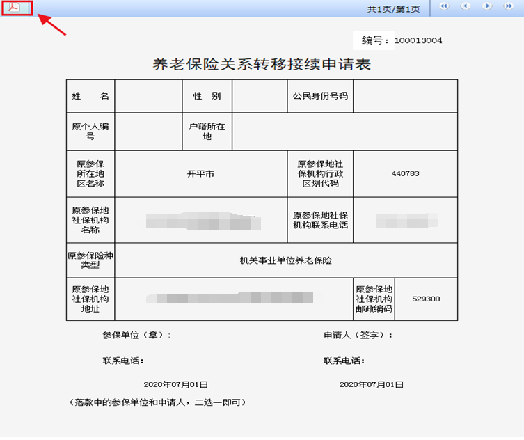 打印路徑:關系轉移接續→轉移接續申請表打印→勾選養老保險關系轉移接續申請表打印→打印