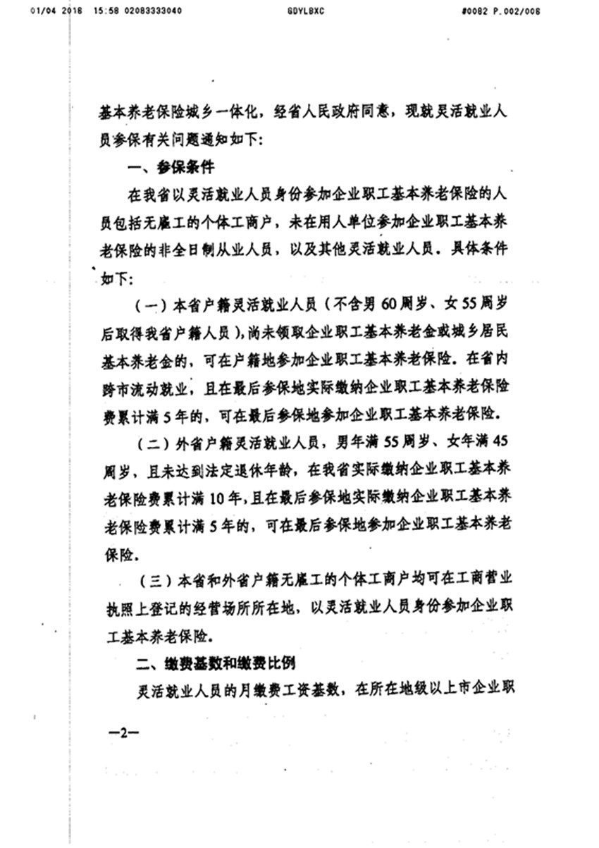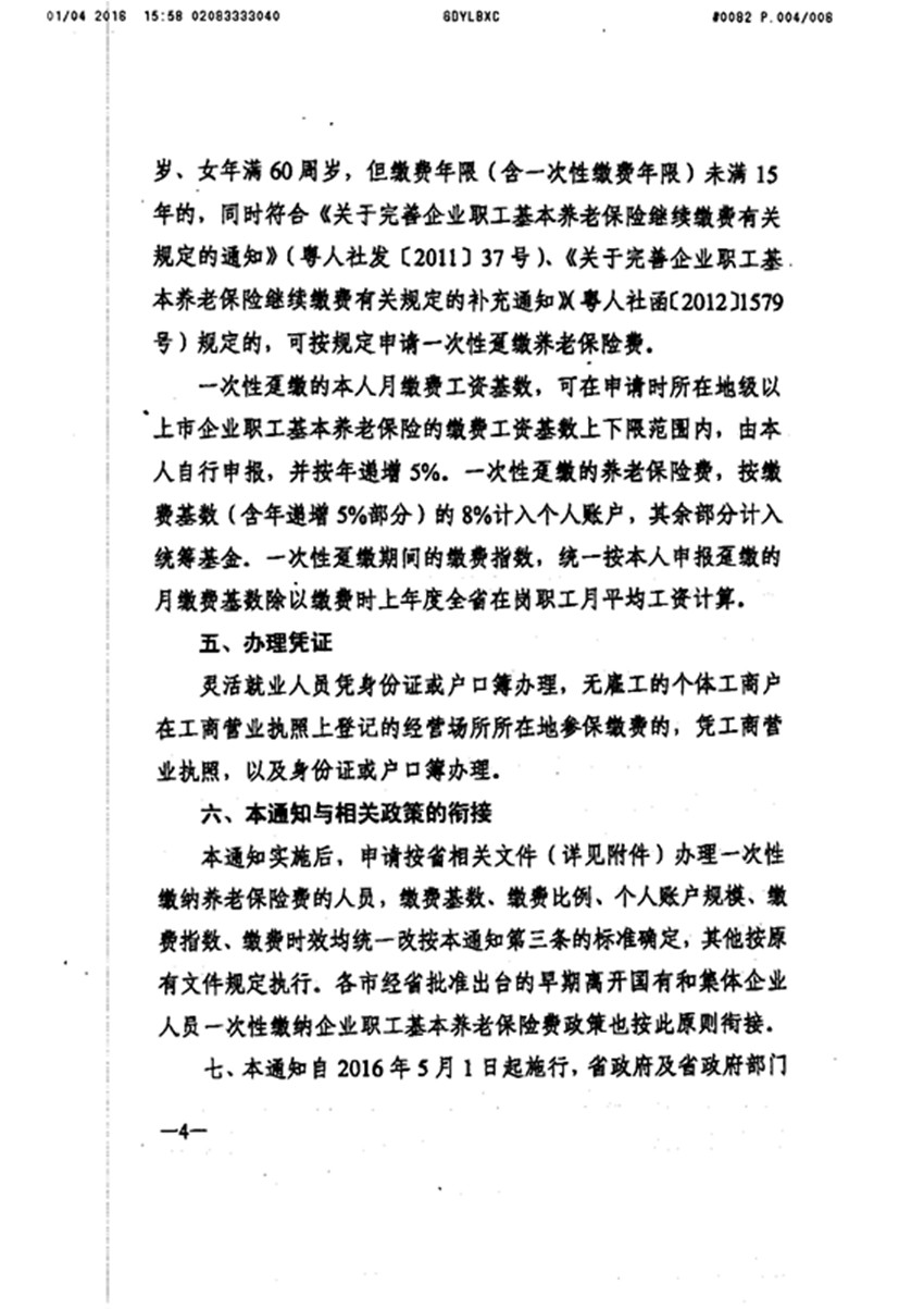 粵人社規[2016]4號 關于完善靈活就業人員參加企業職工基本養老保險有關規定的通知