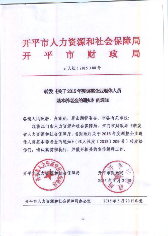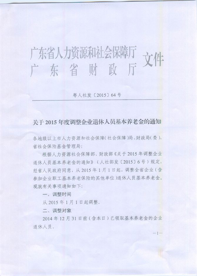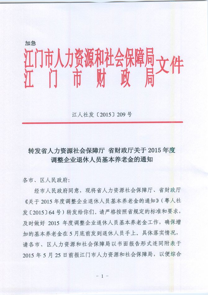 轉發《關于2015年度調整企業退休人員基本養老金的通知》的通知