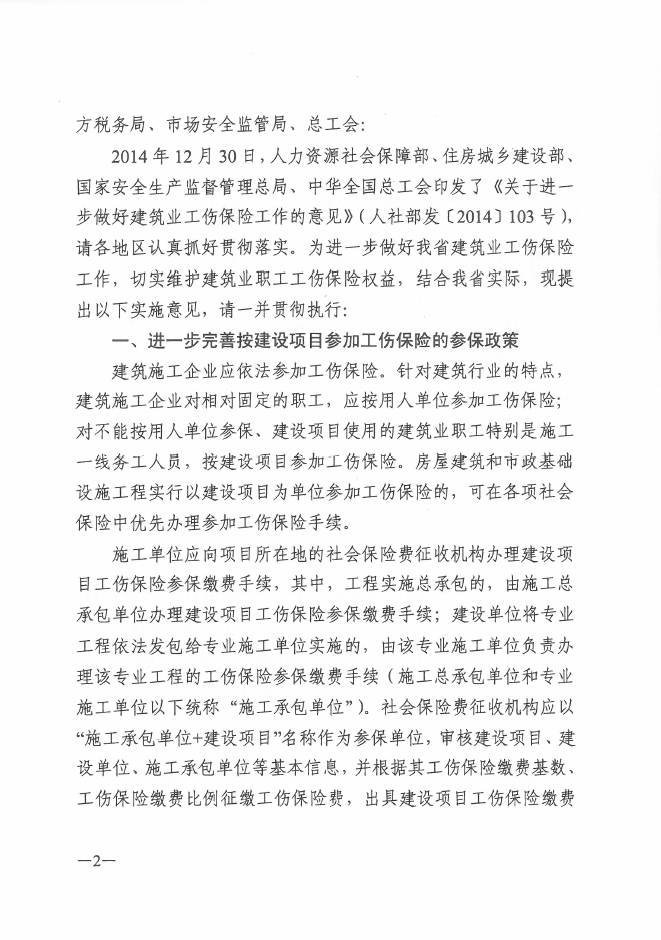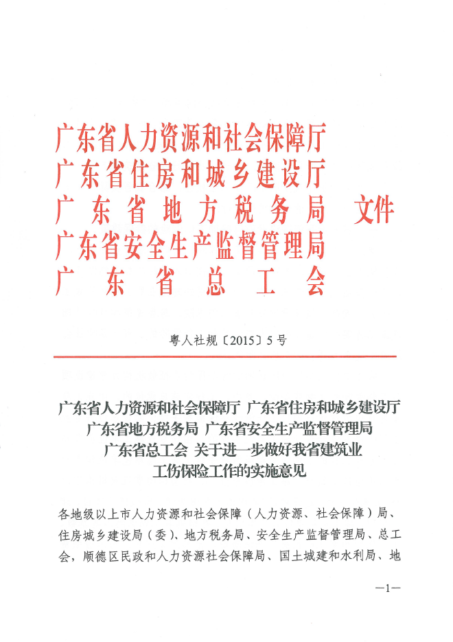 關于進一步做好我省建筑業工傷保險工作的實施意見(粵人社規[2015]5號)