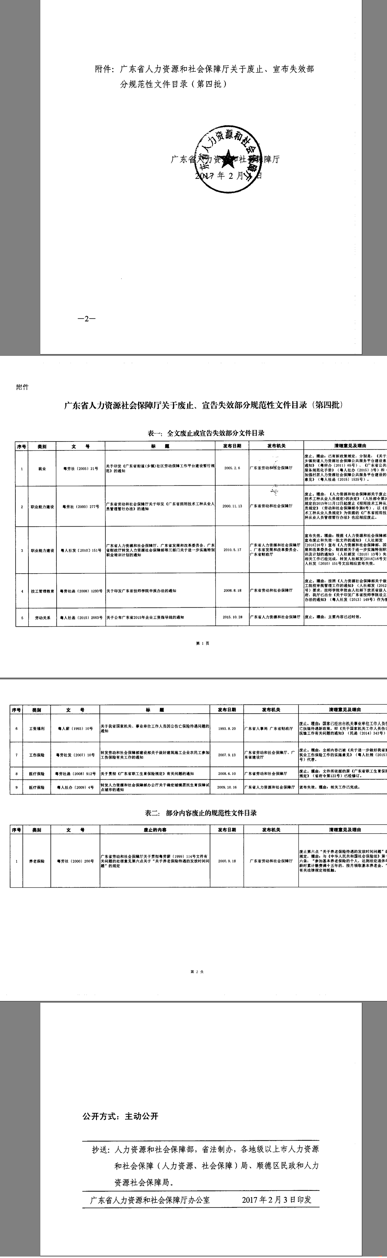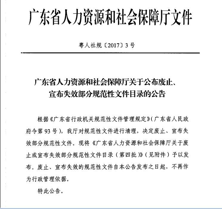 粵人社規[2017]3號 省人社廳關于公布廢止、宣布失效部分規范性文件目錄的公告