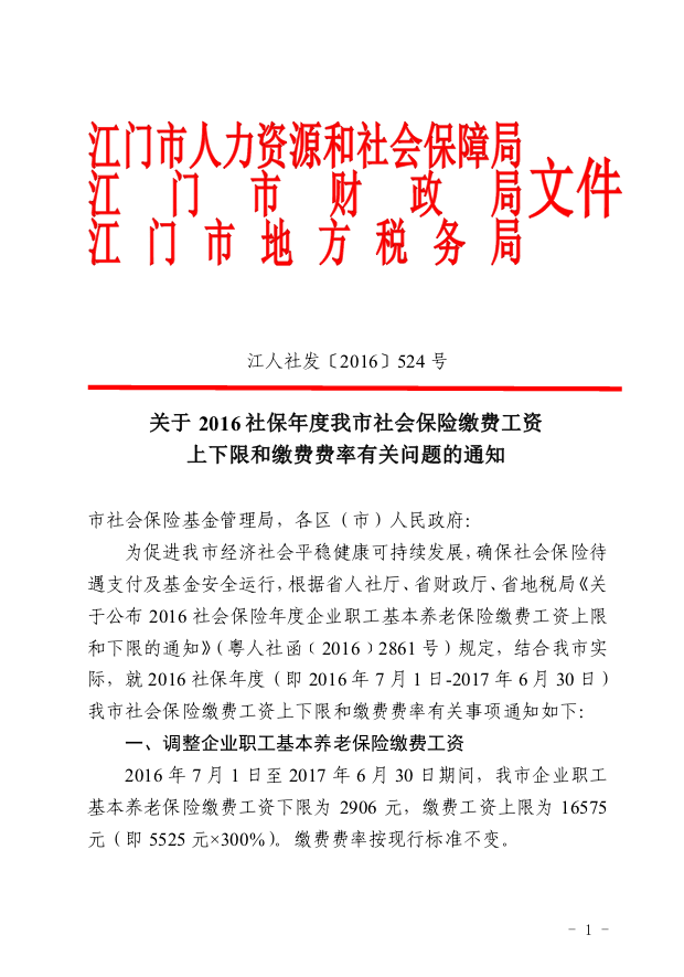 關于2016社保年度我市社會保險繳費工資上下限和繳費費率有關問題的通知