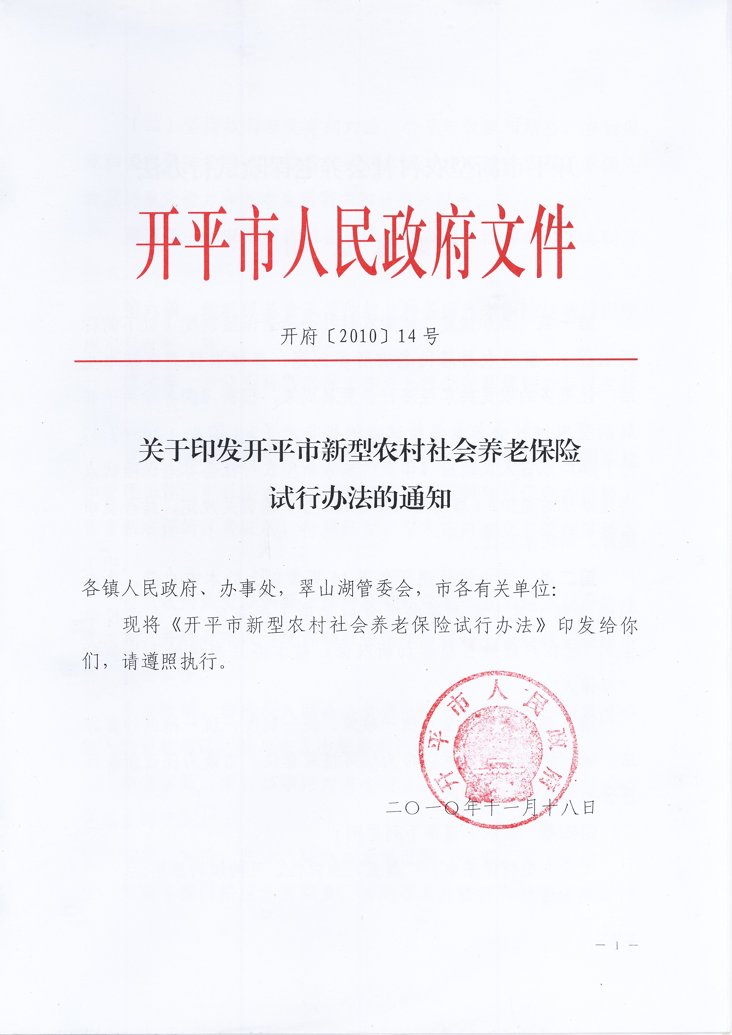 開平市新型農村社會養老保險試行辦法