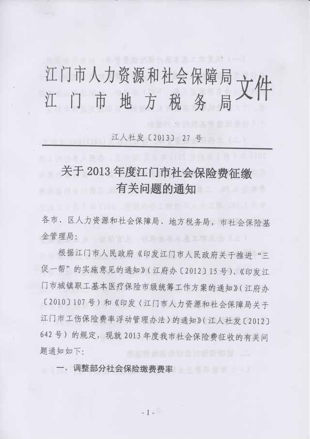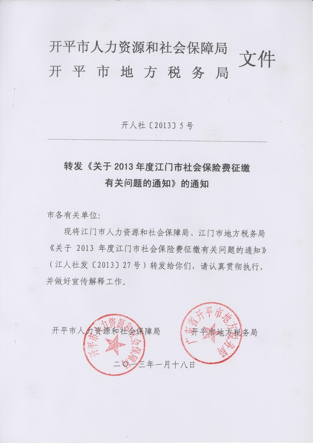 轉(zhuǎn)發(fā)《關(guān)于2013年度江門(mén)市社會(huì)保險(xiǎn)費(fèi)征繳有關(guān)問(wèn)題的通知》的通知