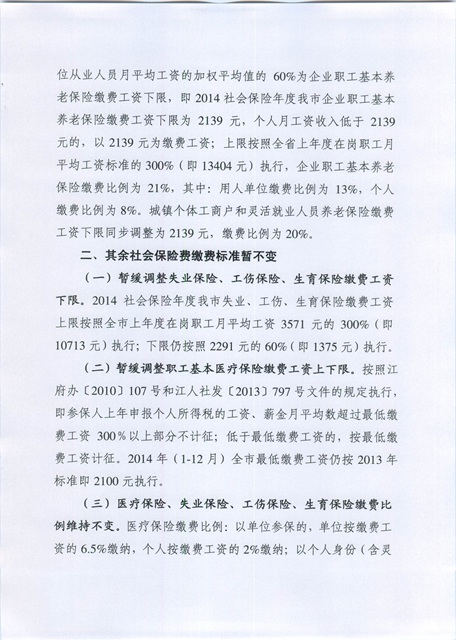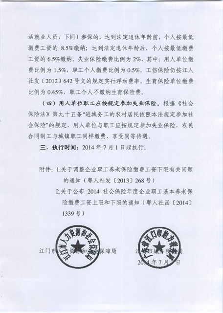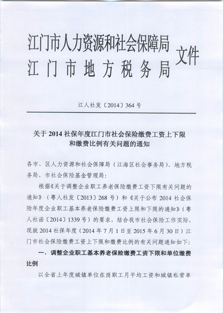 關于2014社保年度江門市社會保險繳費工資上下限和繳費比例有關問題的通知