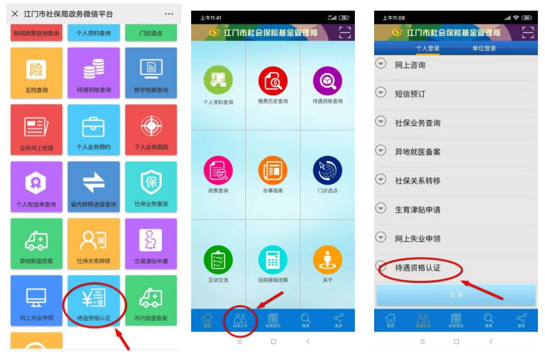 資格認(rèn)證指引:進(jìn)入“江門(mén)社保”微信公眾號(hào)-點(diǎn)擊 “社保服務(wù)”-進(jìn)入“社保查詢(xún)預(yù)約平臺(tái)”-點(diǎn)擊“待遇資格認(rèn)證”-按提示掃描下載江門(mén)社保app-登錄(輸入身份證號(hào)碼、密碼:初始888888、社保卡金融賬戶(hù)后6位數(shù))-點(diǎn)擊“待遇資格認(rèn)證”-上傳身份證正反面-然后視頻拍照-點(diǎn)擊“上傳”。