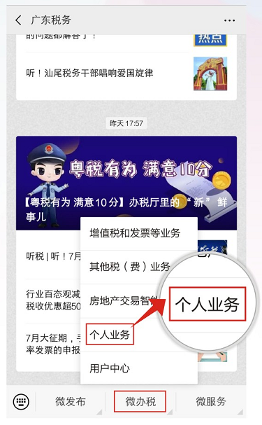 登錄微信,關注“廣東稅務”公眾號,先進行實名認證和帳號綁定,然后點擊【微辦稅】。選擇【個人業務】, 進入【城鄉居民保險】--【城鄉居民保險查詢】。