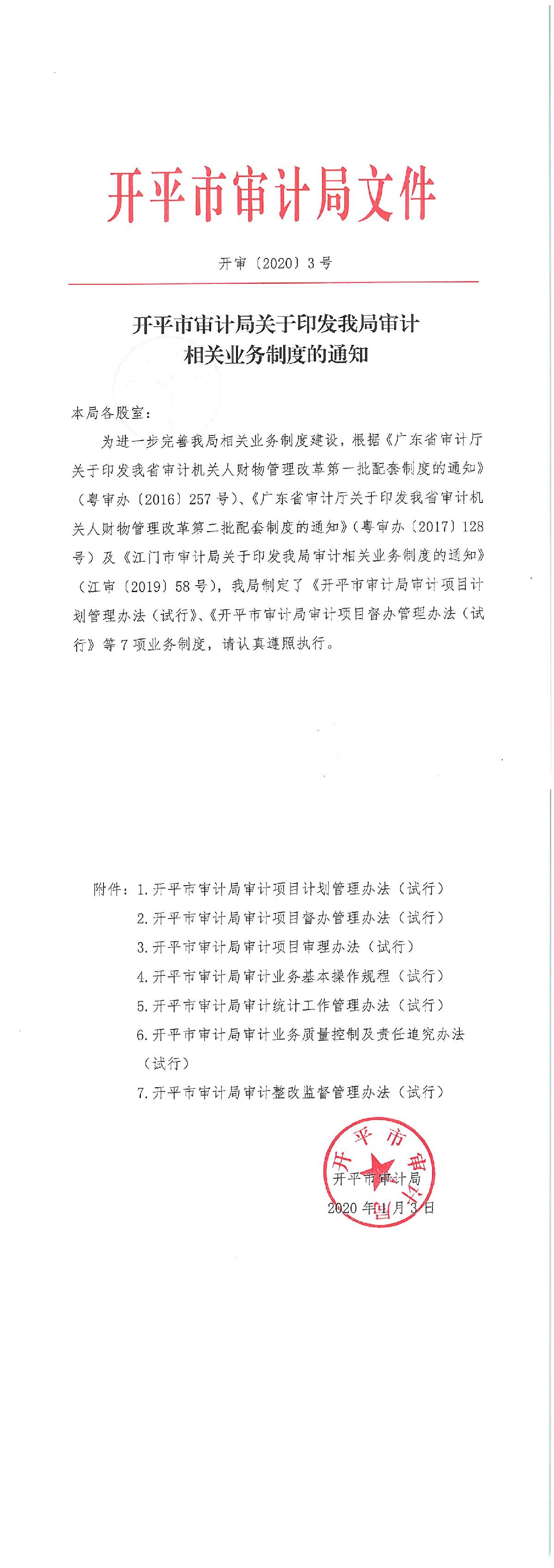 開審[2020]3號 開平市審計局關于印發我局審計相關業務制度的通知