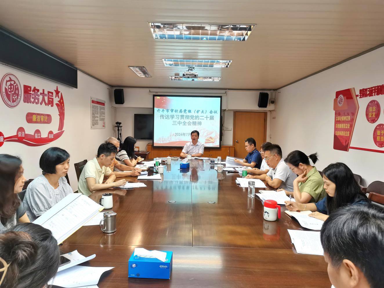 7月26日,市審計(jì)局召開黨組(擴(kuò)大)會議,專題傳達(dá)學(xué)習(xí)貫徹黨的二十屆三中全會精神,以及省、江門市和我市有關(guān)會議精神,對學(xué)習(xí)宣傳貫徹工作進(jìn)行全面部署。局黨組書記、局長方根倫主持會議并講話,局領(lǐng)導(dǎo)和局股級干部參加會議。
