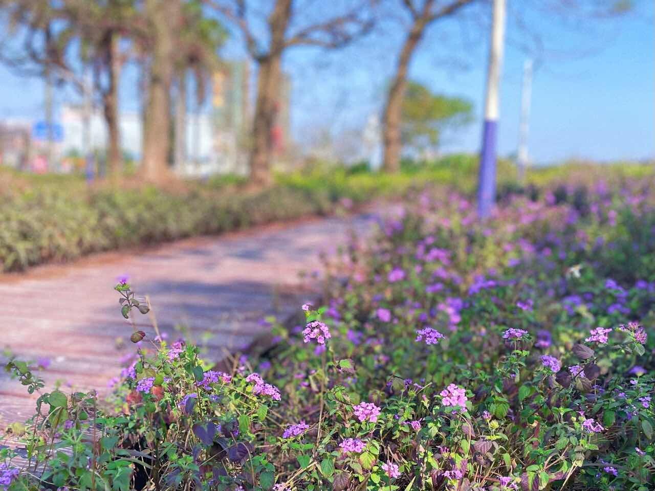 小巧可愛的蔓馬纓丹在水口海傍公園的棧道旁鋪地而開