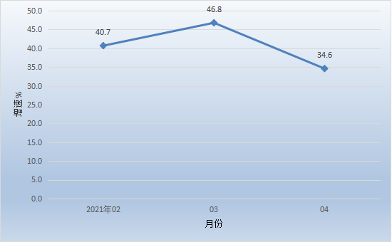 開平市1-4月經濟運行簡況 1-4月,全市主要經濟指標運行簡況如下: 一、工業生產 1-4月,開平規模以上工業企業累計完成工業增加值39.60億元,同比增長34.6%。 分經濟類型看,股份制企業增長38.0%;外商及港澳臺商投資企業增長33.3%;私營企業增長38.1%。分門類看,采礦業增加值下降0.7%,制造業增加值增長35.2%,電力、熱力、燃氣及水生產和供應業增加值增長24.4%。 1-4月全市工業用電量增長33.0%。 圖一:2021年2月以來我市工業增加值增速情況 二、投資 1-4月,全市完成固定資產投資同比增長25.4%。分經濟類型看,國有投資增長9.5%;民間投資增長49.6%。分產業看,第一產業投資增長384.1%;第二產業投資增長54.6%,其中工業投資增長54.6%;第三產業投資增長7.4%,其中房地產投資下降16.3%。 三、消費市場 1-4月,我市完成社會消費品零售總額53.61億元,同比增長24.5%。 圖二:2021年2月以來我市社會消費品零售總額增速情況 四、財政收入 1-4月,全市實現地方一般公共預算收入9.75億元,同比增長23.3%,其中稅收收入5.70億元,同比增長17.6%。 五、金融市場 1-4月,全市金融機構人民幣各項存款余額718.87億元,同比增長6.4%;人民幣各項貸款余額498.76億元,同比增長15.8%。