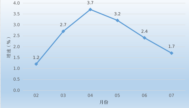2023年1-7月開平市經濟運行簡況 1-7月,全市主要經濟指標運行簡況如下: 一、工業生產 1-7月,開平規模以上工業企業累計完成工業增加值75.70億元,同比增長2.9%。 分經濟類型看,股份制企業增長4.5%;外商及港澳臺商投資企業增長1.7%;私營企業增長2.3%。分門類看,采礦業增加值增長18.7%,制造業增加值增長2.8%,電力、熱力、燃氣及水生產和供應業增加值下降0.4%。 1-7月全市工業用電量增長2.2%。 圖一 2023年2月以來開平市規模以上工業增加值增速 二、投資 1-7月,全市完成固定資產投資同比下降9.4%。從分經濟類型看,國有投資下降18.9%;民間投資下降13.0%。分產業看,第一產業投資下降40.0%;第二產業投資增長21.6%,其中工業投資增長21.6%;第三產業投資下降32.1%,其中房地產投資下降14.9%。 三、消費市場 1-7月,我市完成社會消費品零售總額102.61億元,同比增長1.7%。 圖二 2023年2月以來開平市社會消費品零售總額增速 四、財政收入 1-7月,全市實現地方一般公共預算收入14.81億元,同比下降14.9%,其中稅收收入9.60億元,同比增長20.9%。 五、金融市場 1-7月,全市金融機構本外幣各項存款余額891.33億元,同比增長11.1%;本外幣各項貸款余額638.74億元,同比增長16.9%。全市金融機構人民幣各項存款余額872.51億元,同比增長11.7%;人民幣各項貸款余額636.92億元,同比增長17.0%。 六、外貿進出口 1-7月,全市外貿進出口總額86.2億元,同比下降14.3%。其中,進口7.1億元,同比下降9.0%;出口79.1億元,同比下降14.7%。 2023.8.30