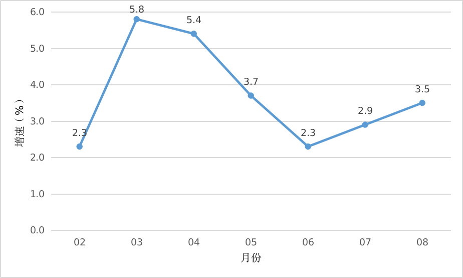 2023年1-8月開平市經濟運行簡況 1-8月,全市主要經濟指標運行簡況如下: 一、工業生產 1-8月,開平規模以上工業企業累計完成工業增加值87.34億元,同比增長3.5%。 分經濟類型看,股份制企業增長5.4%;外商及港澳臺商投資企業增長2.0%;私營企業增長3.8%。分門類看,采礦業增加值增長12.7%,制造業增加值增長3.5%,電力、熱力、燃氣及水生產和供應業增加值下降0.3%。 1-8月全市工業用電量增長3.2%。 圖一 2023年2月以來開平市規模以上工業增加值增速 二、投資 1-8月,全市完成固定資產投資同比下降11.5%。從分經濟類型看,國有投資下降24.8%;民間投資下降14.2%。分產業看,第一產業投資下降22.1%;第二產業投資增長13.9%,其中工業投資增長13.9%;第三產業投資下降31.6%,其中房地產投資下降15.5%。 三、消費市場 1-8月,我市完成社會消費品零售總額119.70億元,同比增長1.3%。 圖二 2023年2月以來開平市社會消費品零售總額增速 四、財政收入 1-8月,全市實現地方一般公共預算收入17.26億元,同比下降11.1%,其中稅收收入10.45億元,同比增長12.5%。 五、金融市場 1-8月,全市金融機構本外幣各項存款余額898.73億元,同比增長12.3%;本外幣各項貸款余額646.92億元,同比增長18.3%。全市金融機構人民幣各項存款余額880.40億元,同比增長12.8%;人民幣各項貸款余額644.90億元,同比增長18.1%。 六、外貿進出口 1-8月,全市外貿進出口總額99.8億元,同比下降12.3%。其中,進口8.0億元,同比下降9.9%;出口91.8億元,同比下降12.5%。 2023.9.28