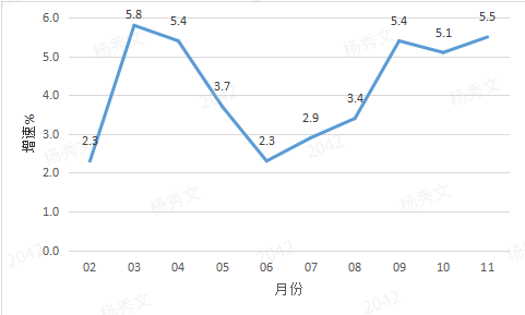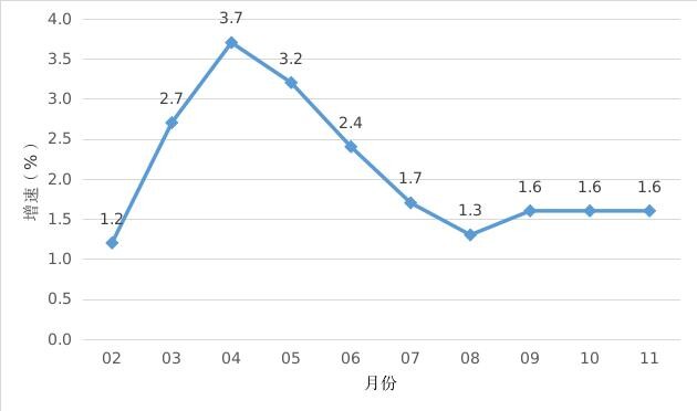 2023年1-11月開平市經(jīng)濟(jì)運(yùn)行簡況 1-11月,全市主要經(jīng)濟(jì)指標(biāo)運(yùn)行簡況如下: 一、工業(yè)生產(chǎn) 1-11月,開平規(guī)模以上工業(yè)企業(yè)累計完成工業(yè)增加值122.54億元,同比增長5.5%。 分經(jīng)濟(jì)類型看,股份制企業(yè)增長9.5%;外商及港澳臺商投資企業(yè)增長2.1%;私營企業(yè)增長6.3%。分門類看,采礦業(yè)增加值增長7.9%,制造業(yè)增加值增長5.3%,電力、熱力、燃?xì)饧八a(chǎn)和供應(yīng)業(yè)增加值增長14.6%。 1-11月全市工業(yè)用電量增長4.7%。 圖一 2023年2月以來開平市規(guī)模以上工業(yè)增加值增速 二、投資 1-11月,全市完成固定資產(chǎn)投資同比下降8.0%。從分經(jīng)濟(jì)類型看,國有投資下降22.2%;民間投資下降9.3%。分產(chǎn)業(yè)看,第一產(chǎn)業(yè)投資增長7.5%;第二產(chǎn)業(yè)投資增長9.2%,其中工業(yè)投資增長9.2%;第三產(chǎn)業(yè)投資下降24.0%,其中房地產(chǎn)投資下降4.8%。 三、消費(fèi)市場 1-11月,我市完成社會消費(fèi)品零售總額171.52億元,同比增長1.6%。 圖二 2023年2月以來開平市社會消費(fèi)品零售總額增速 四、財政收入 1-11月,全市實(shí)現(xiàn)地方一般公共預(yù)算收入27.24億元,同比下降4.9%,其中稅收收入15.08億元,同比增長9.0%。 五、金融市場 11月末,全市金融機(jī)構(gòu)本外幣各項存款余額922.55億元,同比增長11.1%;本外幣各項貸款余額663.49億元,同比增長18.0%。全市金融機(jī)構(gòu)人民幣各項存款余額903.68億元,同比增長11.4%;人民幣各項貸款余額662.15億元,同比增長17.9%。 六、外貿(mào)進(jìn)出口 1-11月,全市外貿(mào)進(jìn)出口總額138.2億元,同比下降9.2%。其中,進(jìn)口11.0億元,同比下降15.4%;出口127.2億元,同比下降8.6%。 2023.12.29