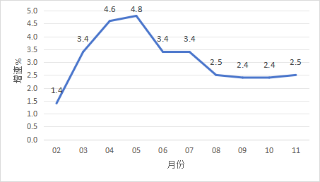 1-11月全市工業用電量增長6.5%。