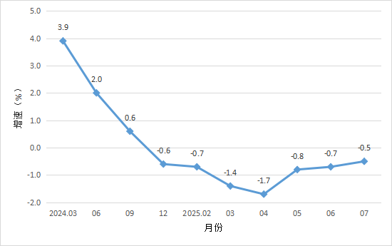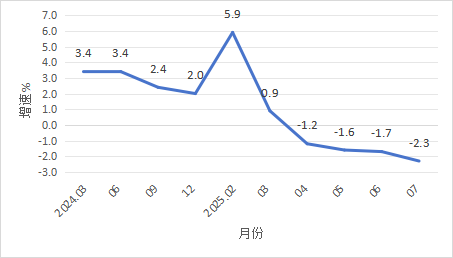 2024年3月以來開平市規(guī)模以上工業(yè)增加值增速 二、投資 1-7月,全市固定資產(chǎn)完成投資同比下降26.6%。分經(jīng)濟類型看,國有投資下降8.7%;港澳臺和外商投資增長13.8%;民間投資下降25.8%。 三、消費市場 1-7月,我市完成社會消費品零售總額97.25億元,同比下降0.5%。 圖2