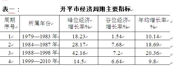 經濟運行過程中,增長是與周期波動相伴隨的,而經濟增長的波動是以國內(地區)生產總值的發展速度波動為主要標志。通過對改革開放以來開平市生產總值的增長速度運用經濟增長的“谷—谷”法來劃分經濟周期,研究我市經濟發展的軌跡。經研究發現,我市已經經歷了四個經濟周期(見圖3)。