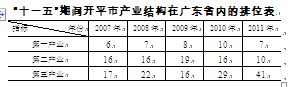 根據2011年《廣東統計年鑒》資料,廣東省行政區域中縣級地區有67個,其中:縣級市有23個,縣41個,自治縣3個。現以“十一五”期間的有關數據進行對比。
