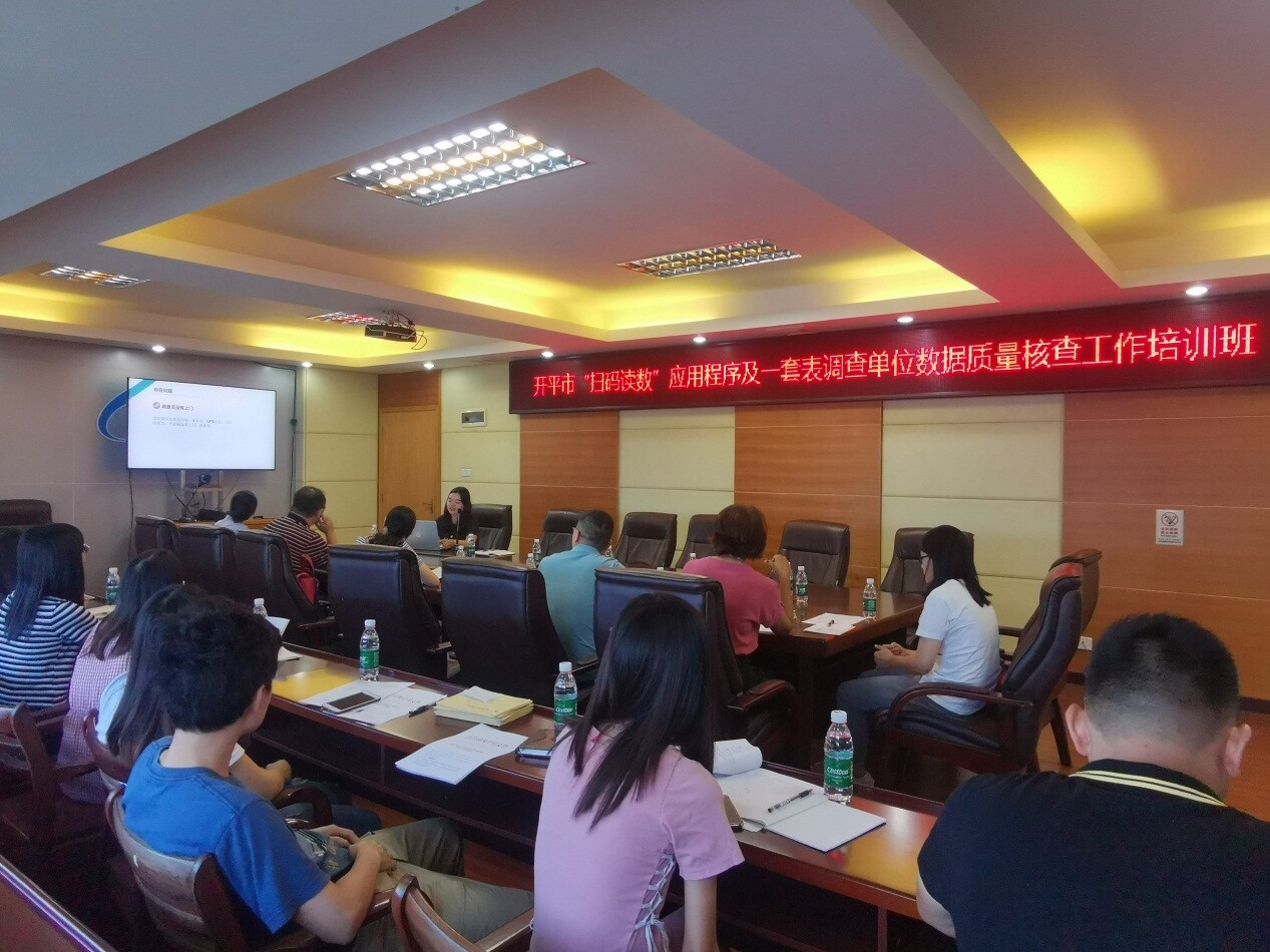開平市統計局舉辦“掃碼讀數”應用程序及一套表調查單位數據質量核查工作培訓班 9月10日,開平市統計局舉辦“掃碼讀數”業務培訓總結及一套表調查單位數據質量核查工作培訓會議。進一步加強基本單位名錄庫建設工作,切實提高名錄庫數據質量。我市15個鎮(街)及翠山湖管委會統計員近20人參加會議。 會議培訓班上首先總結了我市前三批“掃碼讀數”工作情況。并布置了年定報制度,就“掃碼讀數”應用程序進行培訓。通報了各鎮(街)在名錄庫維護更新工作中存在的問題,通過業務培訓鞏固“掃碼讀數”操作流程,并解決在“掃碼讀數”工作過程中和后續審核工作中出現的問題,更加高效便捷地維護更新名錄庫。 接著傳達學習了《關于開展一套表調查單位數據質量核查工作的通知》(江統發字〔2021〕105號)通知要求,并針對一套表調查單位數據質量核查工作的內容和方式進行了詳細的講解。 通過這次培訓,大大提高了統計人員的調查業務水平,為全面推進應用“掃碼讀數”功能、開展一套表調查單位數據質量核查工作打下堅實基礎。